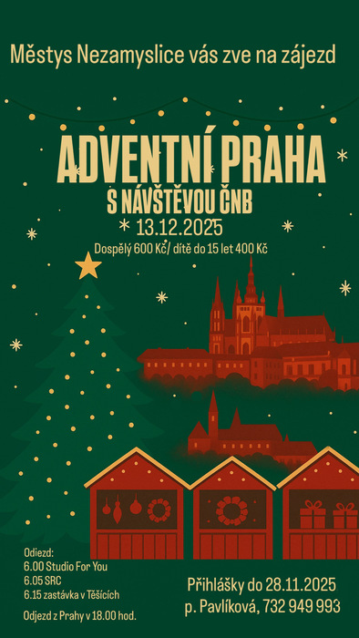 Úvod > Obec > Aktuality > Adventní Praha - Nezamyslice zájezd 13.12.2025