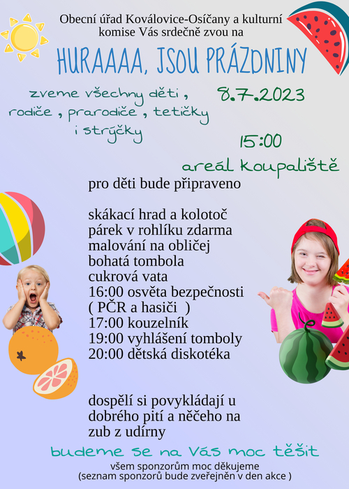 Úvod > Obec > Aktuality > Huraaaaaa prázdniny - 8. 7. 2023 areál koupaliště v Osíčanech