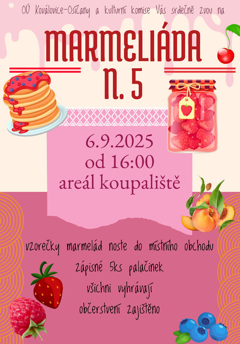 Úvod > Obec > Aktuality > Marmeliáda 6.9.2025 Koválovice-Osíčany - areál místního koupaliště od 16:00 hod
